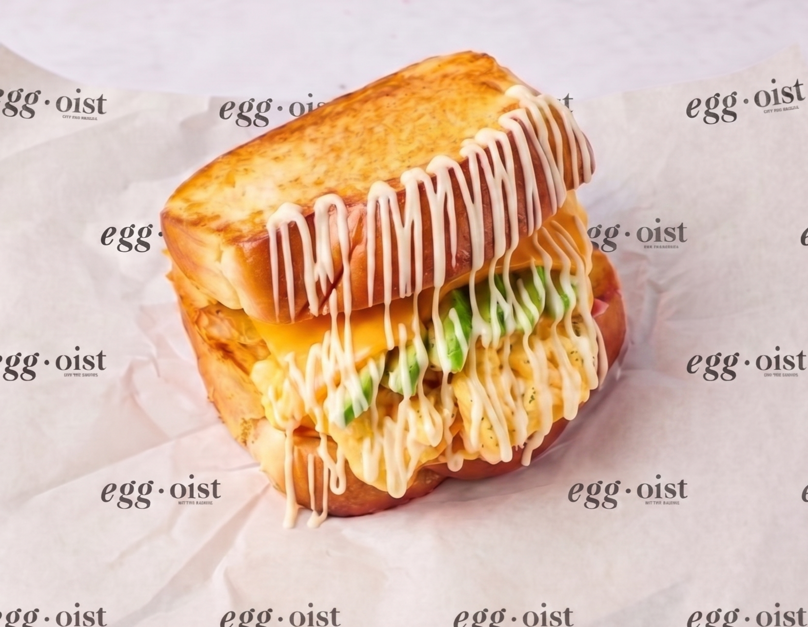 — scrambled eggs, cheddar, avocado, garlic sauce.
